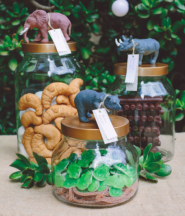Фигурки африканских животных, расставленные между блюдами и закусками на столе и украшающие баночки с угощениями, символично дополнят декор сладкого стола в африканском стиле. Их можно раскрасить самостоятельно акриловыми красками в нужном цвете или под общюю колористику праздника. Безумно красиво такие статуэтки выглядят в золотом цвете с миниатюрным колпачком на голове. Поставив таких зверюшек на крышку баночек с орехами, леденцами или мармеладом - можно подвесить каждой фигурке бирку и подписать название угощений. Не правда ли получилось очень мило? Интерес к такому перекусу сильно возрастет.