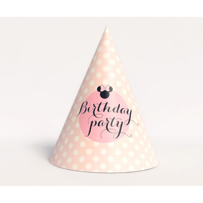 Детский день рождения в стиле Минни в нежных розовых цветах - идеальная тема украшения праздника малышки. А какой день рождения без нарядных колпачков?Стильные колпаки в стиле Минни Маус, подруги Микки Мауса, в нежно-розовых тонах с забавными принтами станут идеальным дополнением к вашему празднику и доставят массу удовольствия деткам, вашим близким и гостям.
