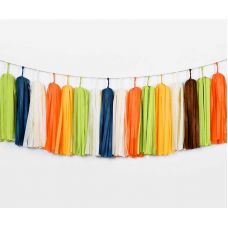 Яркая и эффектная тассел гирлянда – модное украшение современного праздника. Легкие разноцветные бумажные кисточки в сочетании с кисточками из металлизированной пленки золотого или серебряного цвета создают мерцающий эффект. Нарядная гирлянда из к..