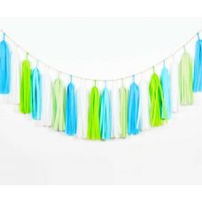 Яркая и эффектная тассел гирлянда в сочетании голубых, синих оттенков и серебра в стиле коллекции Ультрамарин станет неповторимым украшением на Вашем тематическом празднике! Легкие разноцветные бумажные кисточки в сочетании с кисточками из металли..